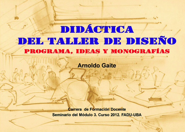 Esta publicación trata sobre una compilación del Programa,de las ideas generales yde las Monografías realizadas por los alumnos, acerca de la DIDÁCTICA DEL TALLER DE DISEÑO. El Seminario forma parte de los cursos de la Carrera de Formación Docente de la Facultad de Arquitectura, Diseño y Urbanismo de la Universidad de Buenos Aires.Las clases se desarrollaron durante los meses de noviembre y diciembre de 2012 y contaron con la participación de docentes que actúan en las distintas Carreras que se dictan en la Facultad. Atento a esta variedad de vocaciones específicas, las monografías finales del curso podían responder al interés en abarcar algún tema específico del programa o bien desarrollar respuestas sobre un cuestionario propuesto por la cátedra, relativo a la organización de un Taller de Diseño.Las Ideas pedagógicas para una didáctica del diseño que siguen al Programa, conforman un pequeño sumario de valores que ayudan a interpretar el tipo de enseñanza que entiendo adecuado a mi interpretación de las actividades del diseño.