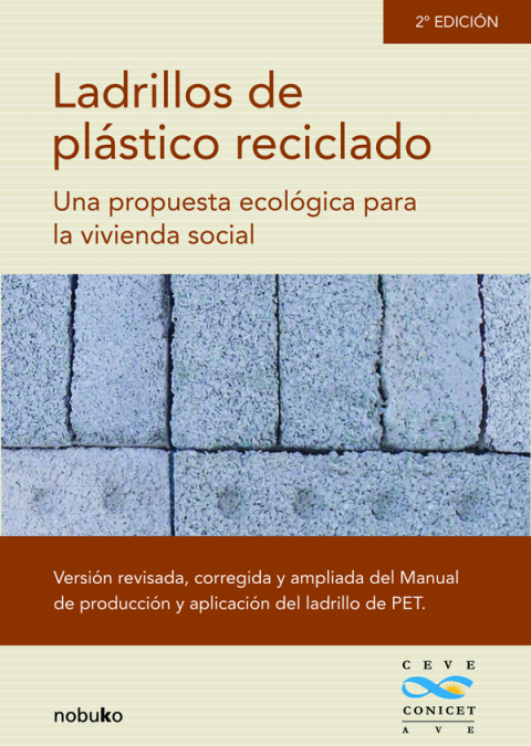 Esta publicación es una re-edición del Manual de producción y aplicación del ladrillo de PET donde se exponen los resultados del proyecto PICT 13-11613 Estudio de las características físico ? mecánicas de los deshechos plásticos urbanos, para su reciclado como material alternativo para la construcción de viviendas en sectores de bajos recursos, dirigido por el Arq. H.Berretta, y financiado por la Agencia Nacional de Promoción Científica y Tecnológica durante el periodo 2004 ? 2007.En el libro, la introducción tiene el propósito de plantear algunos elementos para la discusión de la importancia de I+D de nuevos materiales de construcción con insumos provenientes del reciclado.Posteriormente se describen y caracterizan ladrillos elaborados con PET reciclado (polietilen- tereftalato), provenientes del residuo post-consumo de envases descartables.También se presenta el proceso de producción, así como maquinarias y herramientas necesarias.Aplicaciones de estos ladrillos son mostradas en algunas realizaciones experimentales.